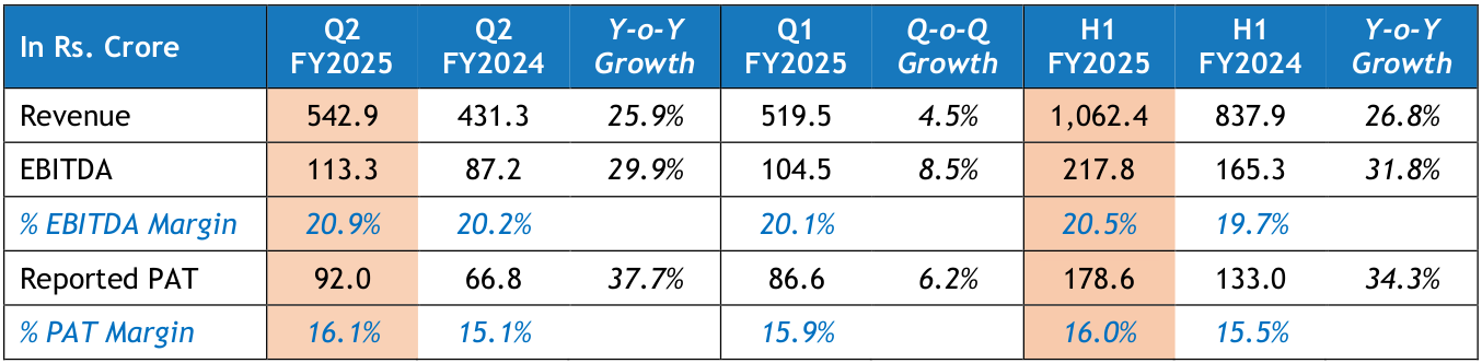 Q2 FY2025: Revenue growth of 25.9% y-o-y | Profit (PAT) growth of 37.7% y-o-y