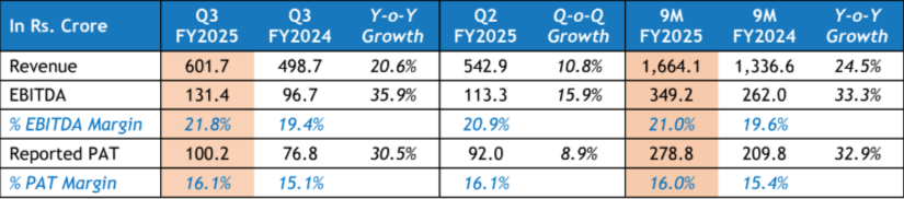 Q3 FY2025: Revenue growth of 20.6% y-o-y | EBITDA growth of 35.9% y-o-y
