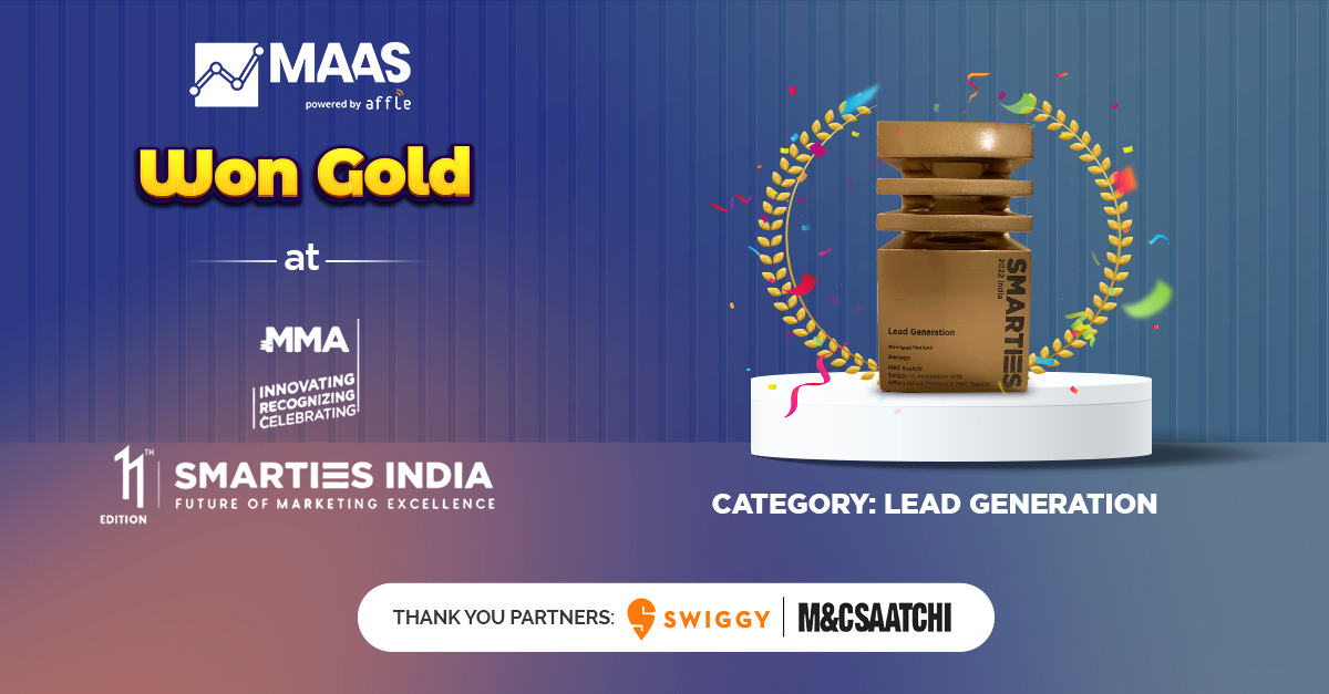The festive quarter has kickstarted with accolades for MAAS platform’s UA campaigns pouring in from multiple avenues. The one that has the team glowing in excitement is the recent Gold Honor for Lead Generation bestowed on MAAS’ UA campaign with Swiggy at the 11th edition of MMA Smarties India, hosted by Mobile Marketing Association.